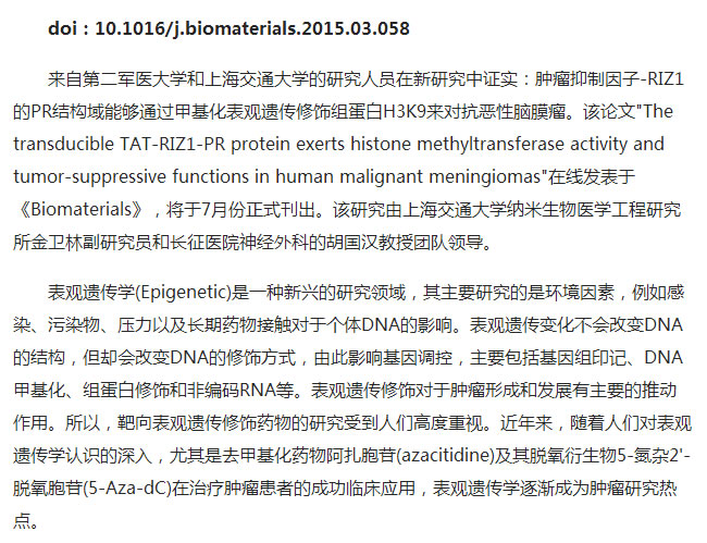 【4】华人研究新成果:表观遗传重编程抗击恶性脑肿瘤